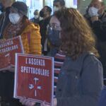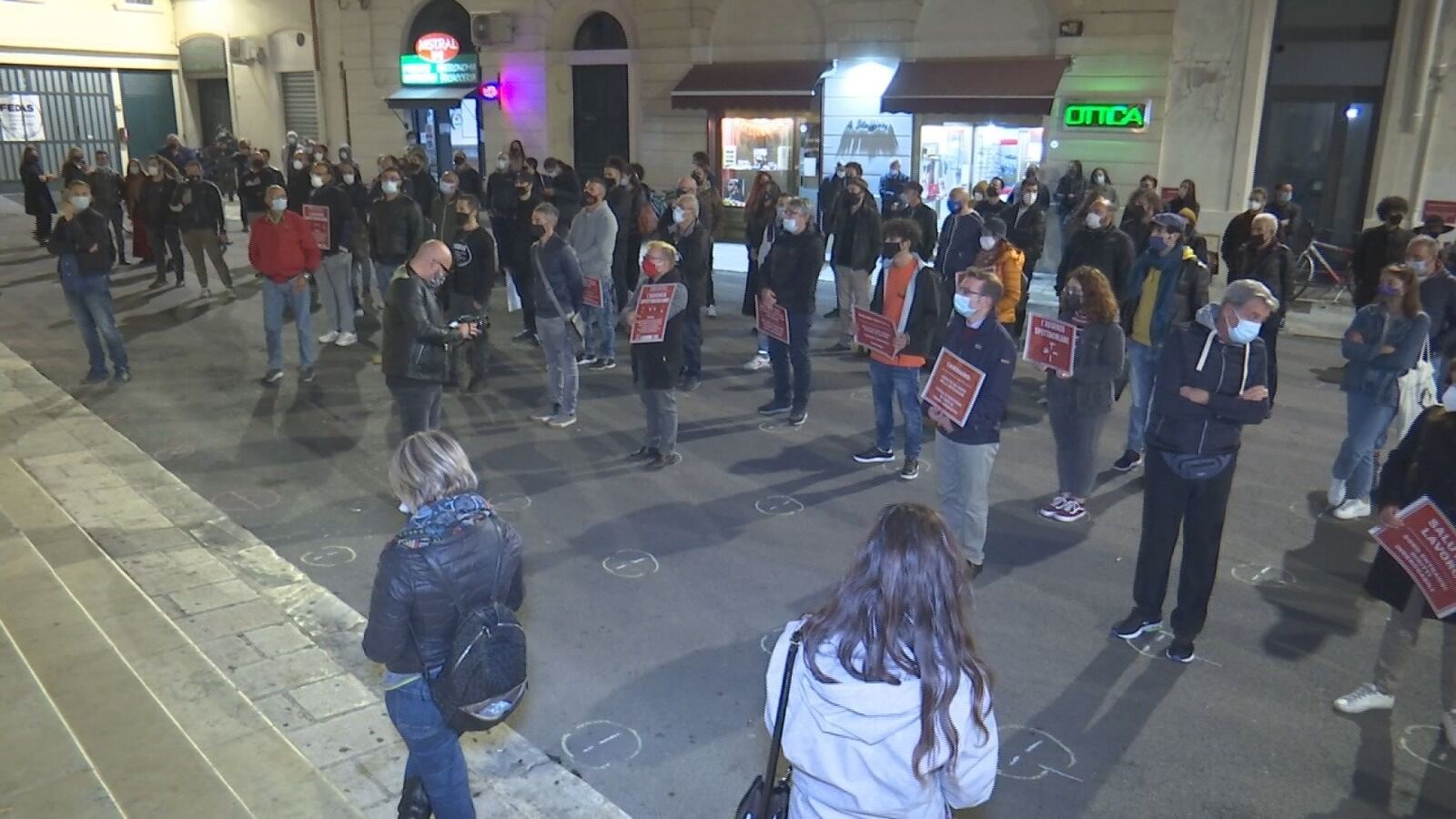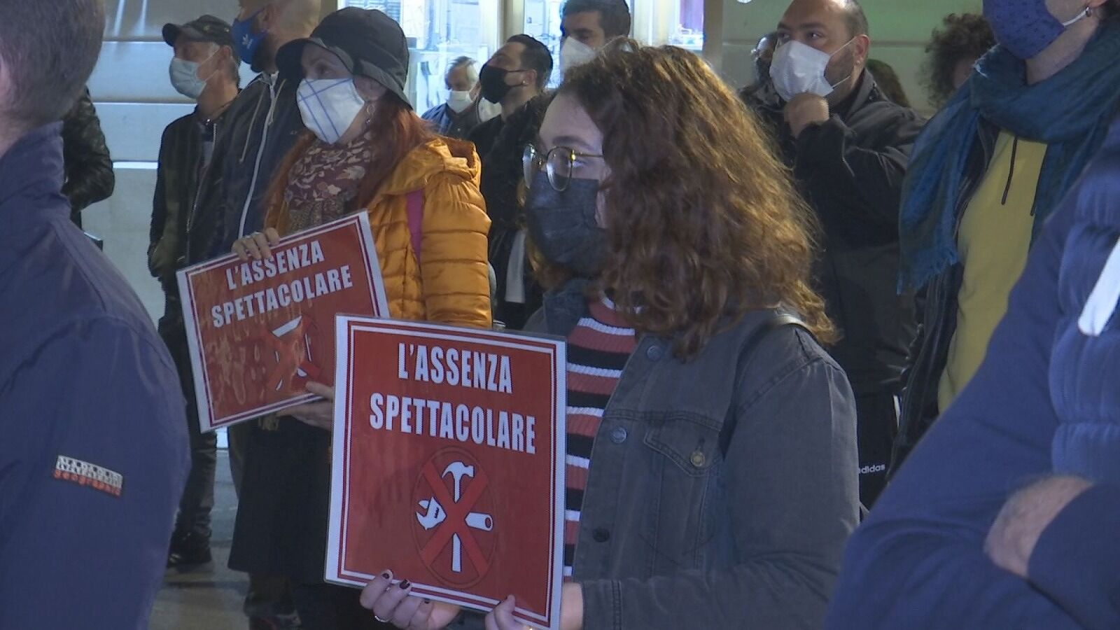 Non si fermano le proteste per le restrizioni imposte dal governo per contenere l’aumento del numero di contagi da Covid-19. A scendere in piazza oggi pomeriggio a Lecce è stato il mondo dello spettacolo e della cultura, profondamente provato dalla pandemia. Gli operatori del settore si sono riuniti di fronte al Teatro Apollo in segna di protesta, per chiedere di avere nuovamente dignità e lavoro.
