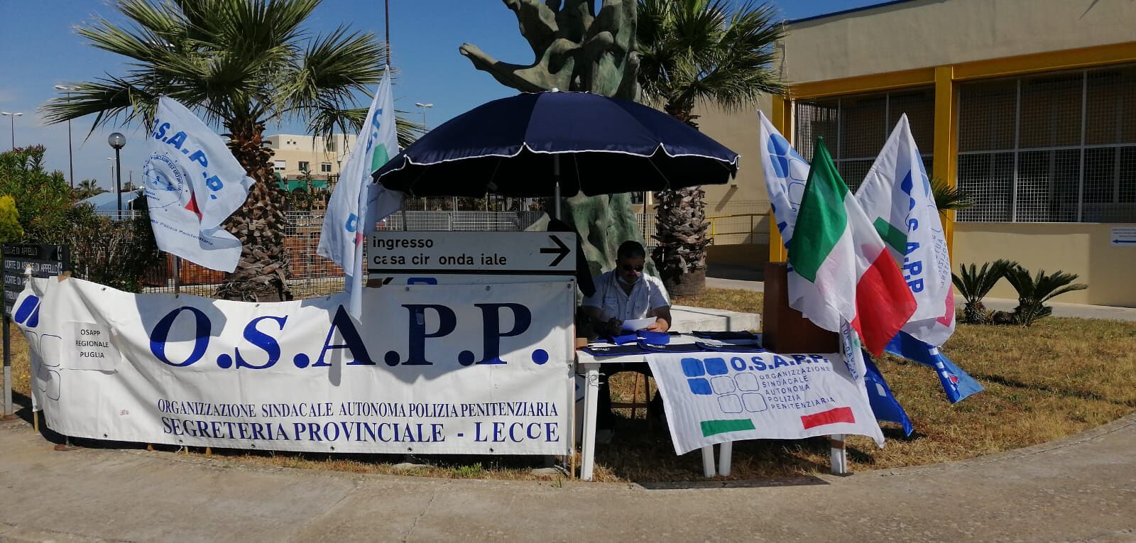 Si è svolto questa mattina il sit-in di protesta della polizia penitenziaria a Lecce, una manifestazione organizzata da Osapp per protestare per il trattamento dei lavoratori leccesi. A motivare la protesta, tra le altre cose, è la mancata attuazione di turni di 6 ore, invece delle 8 ore attuali, come sarebbe previsto dalle Norme contrattuali vigenti, fa sapere il sindacato.
