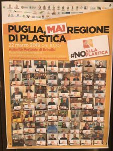 «Puglia, mai Regione di Plastica». È questo il titolo della campagna lanciata dall’associazione culturale “L’isola che non c’è” di Latiano e sposata da via Capruzzi, Asl, Università, enti ed organizzazioni. Una vera e propria dichiarazione di guerra, ma per salvare l’ambiente. L’obiettivo è quello di limitare l’uso degli oggetti monouso più diffusi, in casa come nei luoghi pubblici. Addio a piatti usa e getta, bicchieri delle macchinette di bevande, addio a cannucce e cotton-fioc (sui quali il nostro paese aveva già attuato una stretta eco-friendly, mettendo al bando quelli non biodegradabili).
