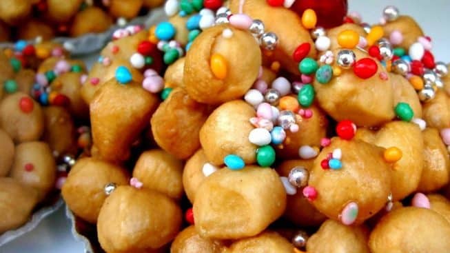 In Salento non è Natale senza purceddhruzzi. Non c’è niente da fare, le tradizioni sono tradizioni. Chiamateli come volete se siete meridionali, ma questi gnocchetti di pasta fritta passati nel miele, profumati con scorza d’arancia e cannella prima di essere ricoperti da tanti confettini colorati sono il simbolo di una festa. Chi ha tempo non perde occasione di prepararli perché la sola organizzazione in cucina crea la giusta atmosfera natalizia.