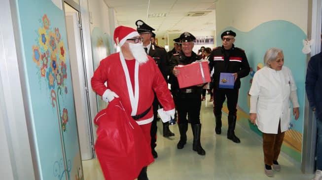 Un gesto che scalda i cuori in pieno periodo natalizio, i Carabinieri del Comando Provinciale di Lecce hanno portato la magia delle feste nel Reparto di Pediatria dell’Ospedale “Vito Fazzi”, donando giocattoli e materiale didattico ai bambini ricoverati. L’iniziativa ha coinvolto in particolare i piccoli pazienti dei reparti di Oncologia, Chirurgia, Reumatologia, Immunologia e Pediatria Generale, dove opera con dedizione Suor Alessandra Notaro.