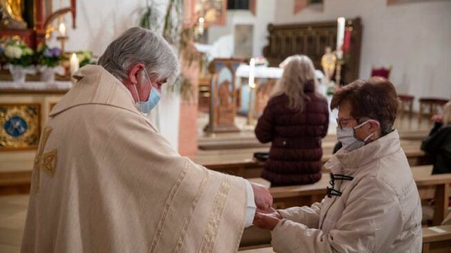 9) La somministrazione della Comunione deve avvenire dopo che il celebrante ha igienizzato le mani e indossato i guanti e la mascherina. L’ostia va offerta senza toccare le mani dei fedeli