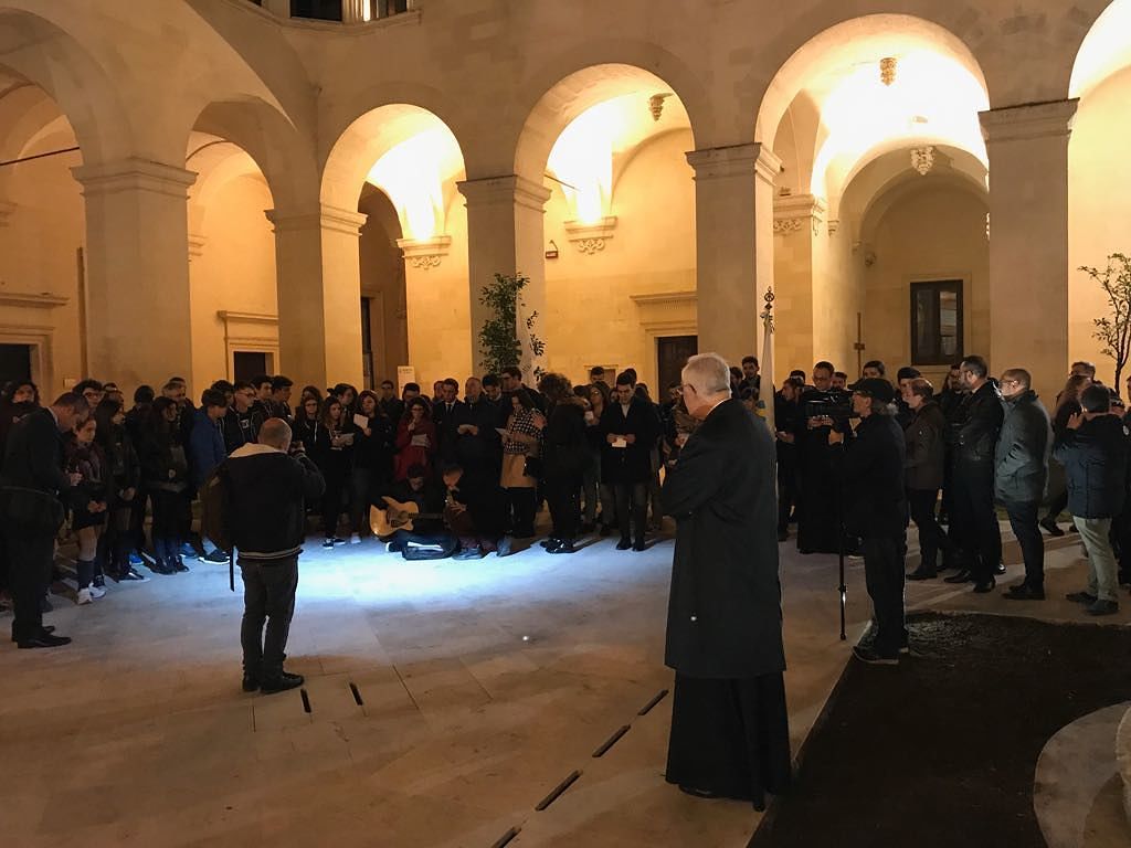 Mi mancherà la composita e dinamica architettura di questa nostra piazza, così come più volte al giorno la contemplavo dalla superba balconata dell’episcopio, spazio che apriva il mio primo mattutino rosario per la città che ancora sonnacchiosa tentava di riprendere il suo lavoro quotidiano; la superba e altezzosa mole del Campanile, la chiassosa accoglienza dell’arco di trionfo dominato dalla nicchia con Sant’Oronzo e dall’ingresso laterale del nostro maggior tempio, attraversato quotidianamente dalle frotte scomposte e irriverenti di turisti e visitatori, il silenzioso e austero ingresso centrale con il portone di bronzo che sintetizza un arco di storia importante della nostra Chiesa e il suo visitatore più illustre e santo: Giovanni Paolo II accolto dal grande pastore mons. Cosmo Francesco Ruppi. Mi mancherà il palazzo del Seminario che racconta tra le sue mura la storia di migliaia di adolescenti e giovani nell’itinerario di preparazione al sacerdozio e oggi la fervida attività delle strutture a servizio di tutta la diocesi con gli uffici di Curia e la sede del nostro locus theologicus: l’Istituto superiore di scienze religiose metropolitano “don Tonino Bello”. Di sicuro sentirò la mancanza della mia passeggiata alle prime luci dell’alba lungo le vie, gli angoli, le corti, le piazze del centro storico che mi svelavano la cura e la bellezza della pietra ricamata che la rende animata, bella, ricercata e attraente.