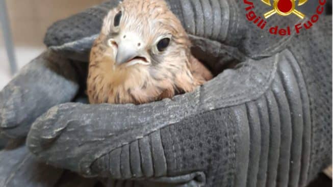 Chiamati dai passanti che avevano visto questo falco grillaio in difficoltà, i Vigili del Fuoco di Lecce prima hanno chiesto la consulenza dell’ornitologo Rosario Balestrieri e poi sono passati all’azione per evitare che l’animale diventasse il gustoso pasto di un gatto randagio.