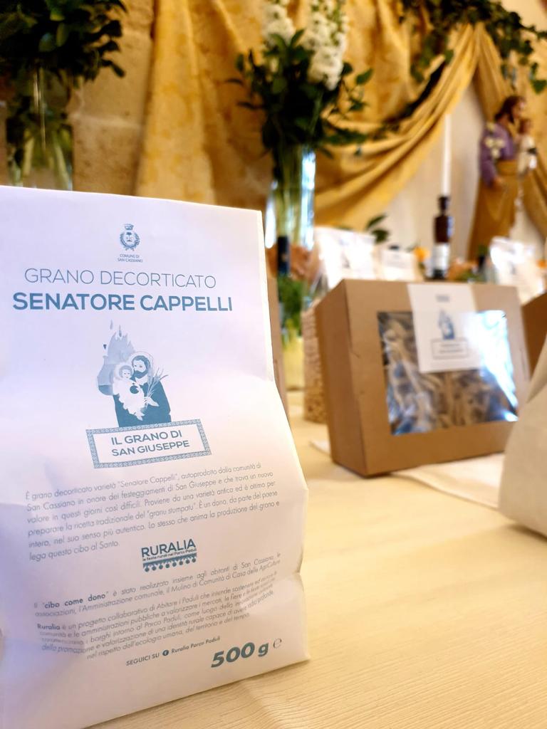 Ed a proposito di tavola, sulla “Taula di San Giuseppe”, allestita nel Palazzo Baronale, la Comunità di San Cassiano offrirà i suoi prodotti più buoni, grano, lupini, farine, nate con Ruralia da autoproduzione pubblica, i devozionali pani fatti con queste farine da un forno locale. E poi i “vermiceddhi” di grano saragolla fatti dalle sapienti mani della nonna Assunta che il 12 luglio prossimo compirà 93 anni, e che a questo rito di preparazione che si ripete ogni anno è aiutata da nipoti e pronipoti; c’è ancora la “massa” fatta a mano dalle “donne della massa”, le ’ncartellate di grano maiorca del Molino di Comunità di Casa delle AgriCulure di Castiglione, preparate da una pasticceria locale, i lampascioni del parco dei Paduli, il miele, il vino, l’olio, i finocchi, i cavolfiori, le fave, prodotti da aziende locali di giovani. Si rinnova, così, il legame con il Santo, e si rafforza un rapporto con il cibo che significa rispetto per l’ambiente, agricoltura sana e sovranità alimentare nell’ottica della territorialità e dell’autosostenibilità.