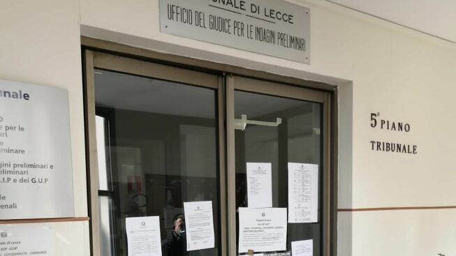 Chiude momentaneamente al pubblico l’ufficio gip/gup del Tribunale di Lecce, per un sospetto caso di Covid. Una dipendente della cancelleria sarebbe risultata positiva al tampone molecolare, dopo essere venuta a contatto con una persona positiva, fuori dal Palazzo di Giustizia.
