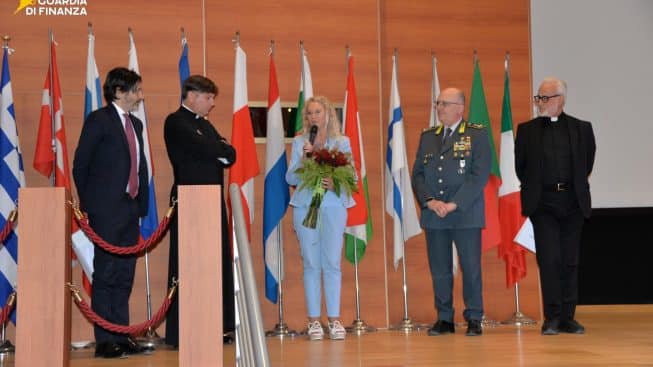Sono intervenuti sul palco, per un indirizzo di saluto, il Comandante Regionale Puglia della Guardia di finanza, Generale di Divisione Guido Mario Geremia, il Comandante della Scuola Allievi Finanzieri di Bari, Colonnello Andrea Di Cagno, il Vicario del Presidente della Corte d’Appello di Lecce, Antonio Francesco Esposito, il Direttore Generale dell’Ufficio Scolastico Regionale per la Puglia Giuseppe Silipo, il Presidente della Fondazione Splendor Fidei, Mons. Antonio Montinaro e il salentino don Antonio Coluccia, sacerdote che da anni si batte contro la mafia e la droga per il rispetto della legalità.