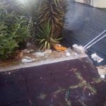 Siamo in un complesso sul quale insistono tre condomini di medie dimensioni: due sono di proprietà di Arca Sud (e quindi della Regione Puglia) e uno del Comune. Quest’ultimo risulta essere abbandonato, poiché le famiglie che vi abitavano sono state trasferite altrove e gli uffici di “Palazzo Carafa” abbiano iniziato una serie di lavori di ristrutturazione, sistemando le impalcature. Peccato che quei lavori non siano mai stati portati a termine, anzi, siano fermi, ci raccontano i residenti mostrando l’immobile. Quell’edificio è diventato un dormitorio in cui barboni e clochard lo occupino facendo spesso razzie.