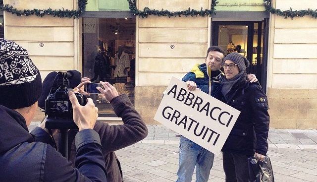 Passeggiare tranquillamente in piazza Sant’Oronzo, verso l’ufficio o tornando a casa, in una giornata più grigia del solito e trovarsi di fronte una ragazza bendata con un cartello davanti a sé con su scritto: “Io mi fido , tu ti fidi?” e con le braccia aperte in attesa che la gente la abbracci. Oppure incontrare per strada un ragazzo con in mano il cartello “Abbracci gratis” che invita passanti sconosciuti a stringersi in un abbraccio.