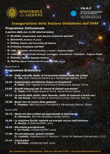 Non è un caso che l’esperimento parta proprio da Lecce. La collaborazione con l’Università del Salento, infatti, è più che consolidata e vanta un’esperienza ormai cinquantennale nel campo degli studi e della didattica in astrofisica.