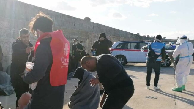 Alle operazioni di soccorso intervengono la Croce Rossa, il 118 e la Caritas Diocesana, la presenza di Caritas è stata sempre costante e solerte. Il Direttore, Don Lucio Ciardo, alcuni componenti dell’equipe e, da qualche mese, i volontari provenienti dalle comunità parrocchiali, si mobilitano per dare il benvenuto a queste persone, distribuendo loro bevande calde l’inverno, fresche d’estate, biscotti, frutta fresca e cibi di veloce consumazione forniti dal Banco delle Opere di Carità Puglia. Viene consegnato, inoltre, un bigliettino dov’è riportato il benvenuto in varie lingue, indicando le modalità e i tempi di attesa riguardanti il loro trasferimento nel centro di primissima accoglienza. Infatti, una volta completate le operazioni di sbarco, il gruppo viene trasferito con gli autobus a Otranto o presso la Masseria Ghermi di Lecce. In questi centri, i profughi trascorrono il periodo di quarantena di 15 giorni, venendo sottoposti a un primo tampone in ingresso e a un secondo in uscita.