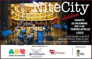 La solidarietà e l’eccellenza culturale si danno appuntamento a Lecce con l’annuncio del concerto benefico ‘NiteCity for Children‘, in programma sabato 20 dicembre alle ore 21.00 presso il Teatro Apollo. L’evento, ideato e condotto da Cicky Forchetti, non sarà solo un momento di spettacolo, ma un significativo atto di impegno civile, culminato nella donazione di una strumentazione medica vitale e nel conferimento di un prestigioso riconoscimento artistico.