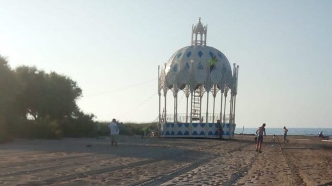 Sulla spiaggia di Torre Chianca è spuntata un’imponente cassa armonica. Quel “chiosco della musica” tipico delle feste popolari che fa pensare che quel tratto di litorale della marina di Lecce ospiterà a breve un grande evento. Peccato che sia lo stesso punto dove, esattamente un anno fa, era stato scoperto un nido di Caretta Caretta, poi «adottato» dai volontari della locale associazione per permettere alla natura di fare il suo corso senza ‘ostacoli’.