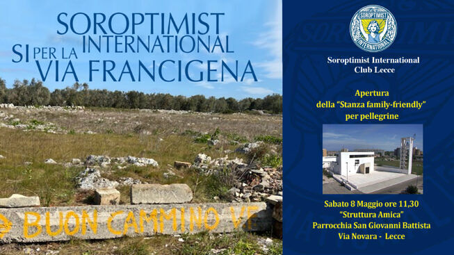 Si svolgerà domani, sabato 8 Maggio alle ore 11.30 presso la parrocchia di San Giovanni Battista di Lecce, l’inaugurazione, da parte del Soroptimist Club Lecce della prima stanza “Family-friendly” dedicata a pellegrine in cammino sulla Via Francigena che viaggiano sole o con i figli.