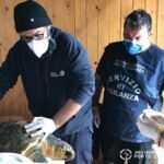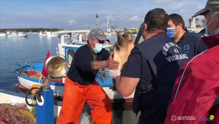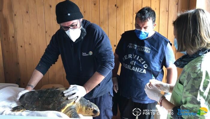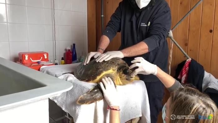 Grazie al costante impegno di sensibilizzazione del Consorzio di Gestione di Porto Cesareo, i pescatori che rinvengono per sbaglio una tartaruga nelle loro reti contattano l’AMP e si attiva la macchina dei soccorsi. Gli operatori di Porto Cesareo portano la Caretta caretta presso la riserva di Torre Guaceto e i colleghi del Consorzio la ricoverano presso il proprio centro recupero tartarughe marine attivo dal 2016.