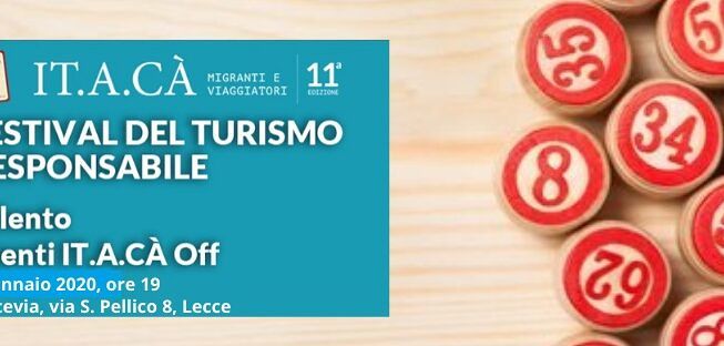 La tombolata rappresenta un evento off di promozione di It.a.cà migranti e viaggiatori – Festival del Turismo Responsabile, dal 2018 presente anche in Salento. La terza edizione di It.a.cà Salento – rete di Enti, cooperative e associazioni – si svolgerà in provincia di Lecce anche nel 2020 e nei prossimi giorni sarà reso pubblico il tema conduttore di questo anno.