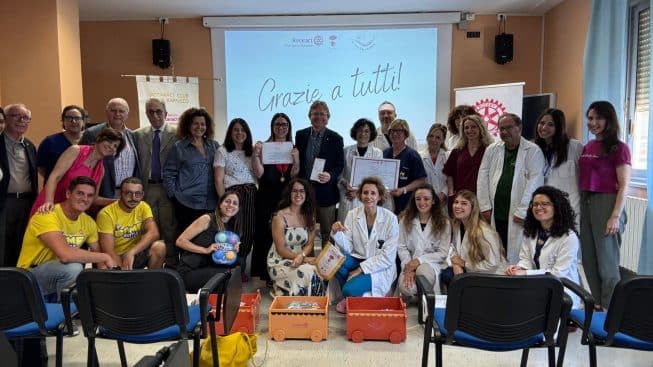 La cerimonia di consegna del Modulo operativo è avvenuta nella Sala conferenze del “Fazzi”, erano presenti Yanko Tedeschi (direttore amministrativo Asl), Lucia Russo (direttore facente funzioni Chirurgia Pediatrica), Monica Scotto Di Carlo (dirigente Unità di Psicologia Ospedaliera), Anna Patrizia Barone (direttore medico Polo Ospedaliero) e Roberta Tornese (dirigente medico Polo Ospedaliero Asl). Oltre alla presidente Rotaract, Francesco De Vitis, numerosi i Rotariani intervenuti, tra i quali il presidente del Club Lecce Sud, Stefano Pelagalli, e le socie, impegnate nell’ideazione e organizzazione del Progetto, Gloria Melcarne Nicolì e la psicologa Benedetta Serio. Durante l’incontro, tutti hanno sottolineato la rilevanza dell’iniziativa in quanto eleva la qualità dell’intervento sanitario, allo stesso tempo è stato messo in risalto l’importanza dell’apporto che le associazioni di volontariato possono dare al miglioramento delle condizioni di ricovero e cura dei pazienti.