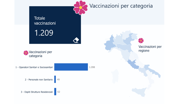 Fino ad oggi, secondo il sito del Ministero della Salute, le dosi somministrate in Puglia sono così divise: 1.098 al personale sanitario e sociosanitario, 49 al personale non sanitario e 62 agli ospiti delle rsa.