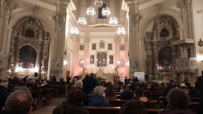 E ieri nella basilica del Rosario la grande veglia di preghiera voluta dall’arcivescovo di Lecce mons. Michele Seccia che ha visto una partecipazione impressionante di persone.