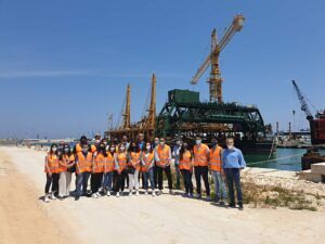 Gli studenti, insieme al Prof. Giuseppe Roberto Tomasicchio, Docente ordinario di Costruzioni marittime e portuali preso l’Università del Salento, hanno avuto l’occasione di vivere un momento di alta formazione sul campo: erano, infatti, presenti all’incontro il Dirigente del Ministero delle Infrastrutture e della Mobilità Sostenibili Ing. Scaravaglione, il Responsabile di cantiere dell’Impresa Grandi Lavori Fincosit Ing. Gentili, e l’Ing. Paolo Iusco dell’Autorità Portuale.