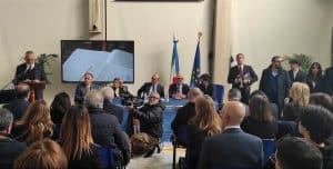 Accanto al ministro erano presenti il sindaco di Lecce Adriana Poli Bortone, il senatore Roberto Marti, presidente della Commissione Cultura del Senato della Repubblica e il Prefetto della provincia di Lecce Natalino Manno.