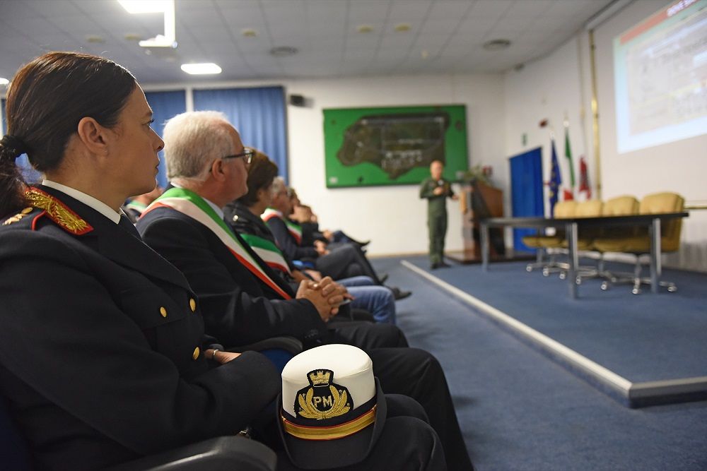 Dopo il saluto di benvenuto, il colonnello Alberto Surace, Comandante della Base, ha presentato ai primi cittadini il reparto. Ha ricostruito con loro la storia, dalla nascita dell’aeroporto, che risale agli anni ’30, fino agli imminenti sviluppi.