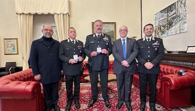 I militari sono stati insigniti della medaglia del Senato della Repubblica. Questa mattina la consegna alla presenza del Prefetto, del Senatore Marti e del Colonnello D'Amato