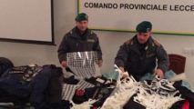 Merce contraffatta sequestrata dai Finanzieri della Compagnia di Lecce: il bottino comprendeva 7000 capi e accessori di abbigliamento, CD e DVD contraffatti. I responsabili sono otto uomini di origine senegalese.