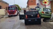È stato necessario l’intervento dei Vigili del Fuoco per ‘liberare’ la conducente di un’auto rimasta incastrata tra una vettura e il muro di un’abitazione