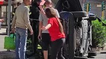 La conducente della Smart che si è ribaltata e ha sbattuto contro un palo è rimasta bloccata nell'abitacolo. Necessario l'intervento dei Vigili del Fuoco