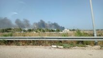 La colonna di fumo visibile da oltre 10 km di distanza ha oscurato il tratto della superstrada Lecce San Cataldo, nei pressi del depuratore di Ciccio Prete.
