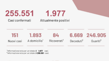 Nessun decesso, ricoveri stabili a 84 e 151 nuovi casi positivi su 11.363 test, di cui 32 in provincia di Lecce. Sono i numeri del bollettino epidemiologico della Regione Puglia