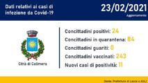 Sono saliti a 24 i casi positivi a Calimera, soprattutto in fascia pediatrica come è scritto in un post pubblicato sulla pagina Facebook del comune in cui si invitano i cittadini ad evitare comportamenti a rischio