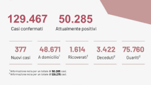 Sono 377 i casi positivi scoperti in Puglia su 3.583 test, 61 in provincia di Lecce che registra anche 2 decessi per complicanze da Covid su 23 totali