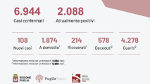 In lieve aumento la curva dei contagi in Puglia, come dimostrano i numeri del bollettino che ogni giorno analizza l'andamento della epidemia nella Regione
