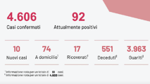 Sono 10 i nuovi casi di covid in Puglia, 7 dei quali in provincia di Lecce. I nuovi positivi sono quasi tutti asintomatici. Nemmeno oggi si segnalano decessi.