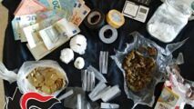 Scoperto anche materiale per il confezionamento e denaro. Un altro arresto per detenzione di droga a Leverano. I carabinieri supportati dall’Unità Cinofila di Modugno.