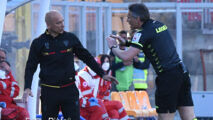 Al termine del pareggio che ha escluso i giallorossi dalla finale dei Playoff, parla il tecnico. Tachtsidis in ospedale per accertamenti dopo uno scontro di gioco.