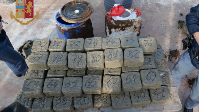 La successiva attività di indagine, consentì, il successivo 18 novembre, il rinvenimento, presso un’azienda florovivaistica dell’agro di Nardò, gestita da Roi, di oltre 77 kg di hashish, suddivisi in panetti ed interrati in più punti del sottosuolo, custoditi in bidoni in plastica.