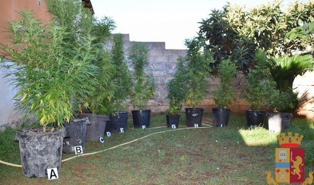 Il controllo, poi, si è esteso al giardino retrostante e di pertinenza della casa, dove, sono stati scoperti nr. 11 vasi di varia grandezza, contenenti piante di varie misure dalle caratteristiche riconducibili verosimilmente a piante di marijuana, del peso complessivo lordo di 13 Kg..