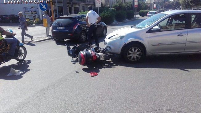 È di un ferito, fortunatamente in modo lieve, il bilancio dell’incidente stradale avvenuto all’incrocio della strada che da Lecce conduce alla marina di Frigole. Le cause che hanno provocato il sinistro sono ancora tutte da ricostruire, fatto sta che, quando mancava qualche minuto alle 15.00, un’auto – una Clio grigia guidata da una donna di Giorgilorio – si è scontrata con uno scooter. In sella alla due ruote un edicolante 60enne che ha avuto la peggio. Nell’impatto con l’asfalto dopo l’urto con la vettura, infatti, l’uomo ha riportato piccole escoriazioni, ma nulla di grave. Solo tanta paura per entrambi i protagonisti della vicenda.