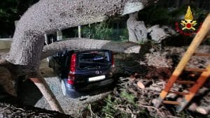La pianta si era abbattuta su un’autovettura, una Fiat Panda, parcheggiata poco prima da alcuni giovani. Per fortuna, ripetiamo, il mezzo era vuoto.
