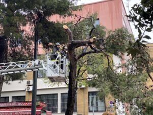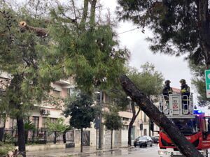 Non appena ci si è resi conto della situazione, è stato prontamente lanciato l’allarme e sul posto sono giunti i Vigili del Fuoco del Comando provinciale che, una volta sul luogo dei fatti, hanno provveduto a tagliare la pianta e liberare i cavi che, fortunatamente, non hanno ceduto.