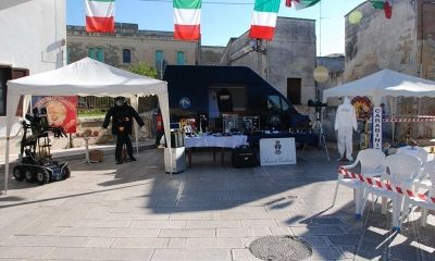 I militari della Sezione Rilievi del Comando Provinciale hanno allestito un vero e proprio set cinematografico dove è stata ricostruita una scena del crimine e data dimostrazione delle principali e più immediate tecniche di intervento in occasione di eventi di particolare rilevanza. A completare le dotazioni dei militari artificieri – antisabotaggio sempre di grande impatto scenico. La scena si è ripetuta questa mattina, nel cortile del Comando Provinciale, dove una delegazione delle scolaresche di Lecce, con circa 250 tra alunni e professori, si è intrattenuta nelle aree più operativamente più sensibili della caserma, visitando la Centrale Operativa, il Gabinetto foto-dattiloscopico e le dotazioni dei vari automezzi in servizio. Tanti sorrisi, curiosità e un pizzico di avventura per i giovani ospiti e per i loro accompagnatori.