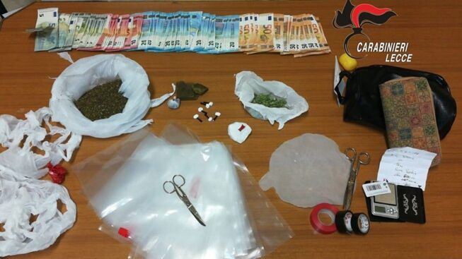 A quel punto è scattata la perquisizione al termine della quale, all’interno di una borsa sono stati rinvenuti: 6 dosi di sostanza stupefacente del tipo cocaina, per un peso complessivo di 3 grammi; un involucro con all’interno altra “cocaina”, del peso di 26 grammi; un involucro con 57 grammi di marijuana; un involucro con 43 grammi di hashish; e la somma in contanti 2.530 euro, ritenuta provento dell’attività di spaccio.