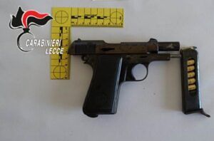 Stessa sorte è toccata al 29enne Radames Trianni, al quale, a Melissano, sempre i militari del Nor della Compagnia di Casarano, in seguito a una verifica del veicolo su cui viaggiava, hanno trovato una pistola Beretta cal 9 corto, perfettamente funzionante con relativo munizionamento (9 proiettili)