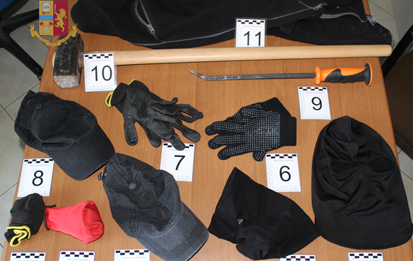 Il 38enne e il 29enne sono stati accompagnati presso la sede del Commissariato, dove, svolti gli accertamenti del caso, sono stati dichiarati in stato di arresto per tentato furto aggravato. Nel corso della perquisizione dell’auto sono stati rinvenuti strumenti atti allo scasso: 1 martello di grandi dimensioni e un piede di porco e altro tra cui guanti da lavoro, cappellini con visiera e due passamontagna.
