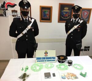 I Carabinieri del Nor – Aliquota Operativa della Compagnia di Tricase, nell’ambito delle verifiche a contrasto dei reati di droga, ad Andrano, hanno arrestato Ivan Martella, 45enne nato a Glarus in Svizzera, ma residente ad Andrano e Marco Minonne, 43enne, nato a Poggiardo, ma anch’egli residente nello stesso comune del primo.