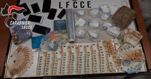 G. P., 35enne, al termine della perquisizione è stato trovato in possesso di ben 851 grammi di cocaina e di materiale per il confezionamento, oltre a 8.065 euro in contanti. È stata la sezione operativa Norm di Lecce ad occuparsi del 35enne che ora verrà tradotto nel carcere di Lecce.