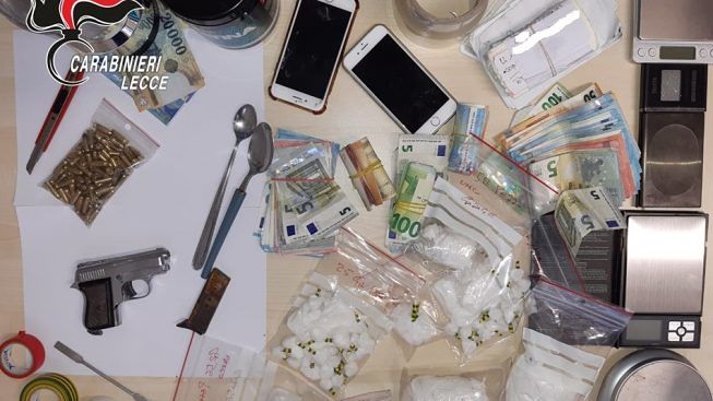 All’interno del garage, i due sono stati trovati in possesso di 433 grammi di cocaina, in parte suddivisa in dosi. Insieme alla sostanza stupefacente, gli uomini in divisa hanno trovato anche 4.195 euro in contanti e una pistola “Zastava”, cal. 6,35 con 80 cartucce. Tutto il materiale è stato sequestrato e inviato all’Ufficio Corpo Reati. Espletate le formalità di rito, i due saranno tradotti nel carcere di Lecce.